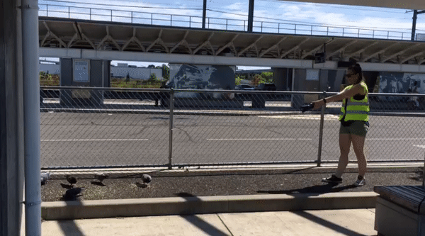 Catching pigeons using a net gun. Image ©Sarah Knutie