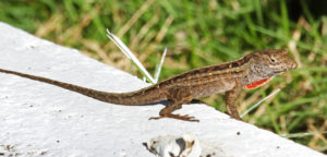 Fig. 1: Brown anole (left; Anolis sagrei) and crested anole (right; Anolis cristatellus)