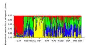 In fact, when looking at the structure plot figure, there are two urban populations that share very little variation with all other populations. Also, all of the non-urban populations show that there is admixture between them, which reflects high gene flow.