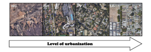 In a recent study published in Urban Ecosystems, my colleagues and I tested whether western fence lizards that live in more-urban habitats have different morphological traits than those in more-natural habitats. Western fence lizards (scientific name: Sceloporus occidentalis) are habitat generalists and are wide-ranging, occurring from Washington all the way down to Baja California. We focused our work in Los Angeles County, California because Southern California is one of the most urbanized places in North America. We examined lizards at four sites that formed an urbanization gradient in terms of housing density, percent impervious surface cover (basically the amount of concrete in an area) and percent tree cover. The least urban site had zero houses, nearly 0% impervious surface, and moderate tree cover while the most urban site had medium-density housing, over 50% impervious surface, and less than 5% tree cover. We hypothesized that the extreme habitat changes that occur with urbanization would affect the morphology of the lizards living there.