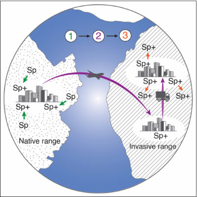 If you are reading this blog, you probably know well that cities create unique environments that can drive rapid evolution of species. However, cities are also hotspots for the entry and establishment of invasive species, harboring high numbers of non-native species. So, is it possible that urban evolution of non-native species is enhancing their ability to invade new regions? In our recent paper, we synthesized current literature and found evidence shows urban evolution is likely altering traits in non-native species (Fig. 1) which increases their invasion risk. Here are some of the key takeaways from our paper!