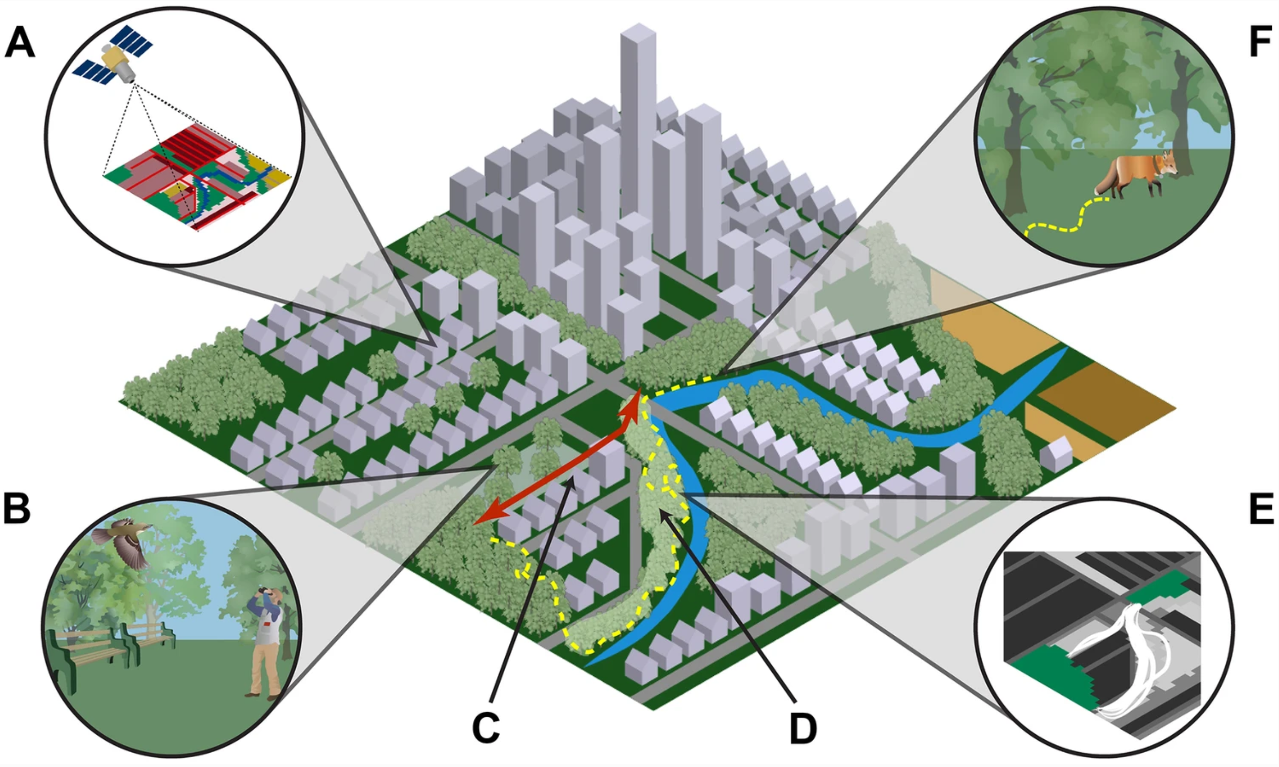 We found a broadening of geographic and taxonomic scope in recent studies, including more research from Chinese cities and on multiple species. We also found more studies that covered multiple time periods than have been documented in prior reviews. However, we observed a continuing reliance on best professional judgment rather than empirical field data to parameterize models and on analytic methods that are 10–20 years old. Our review framework identified several distinct conceptual themes in the literature including foci on land cover, including roads, water, and vegetation; green spaces and infrastructure; ecological conservation, planning, and management; habitat structure and function; and species movement.
