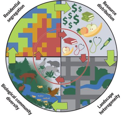 Jump ahead to 2016 and urban ecology is discussing what it means to produce science that is for the city. In McPhearson et al. (2016) (and Pickett et al. 2016), researchers are distinguishing what it means to do work that is “in the city”, “of the city” and “for the city”, leading to a discussion of a more holistic, integrated scientific framework. But somehow, we’ve still walked around a key player in human-dominated landscapes, especially cities. White supremacy and colonialism, which has undeniably shaped today’s world. Fast forward to 2020, Schell and colleagues address this by publishing a piece that eloquently ties ecological and evolutionary processes to systemic racism in cities, including the acts of redlining (more on redlining here) and segregation (see my summary of Schell et al 2020 here). This piece is then strongly complemented by Des Roches et al. (2020) outlining the socio-eco-evolutionary processes in cities and clearly illustrating the interdependency (and feedback loop) that is human existence and the environment (see my summary here).