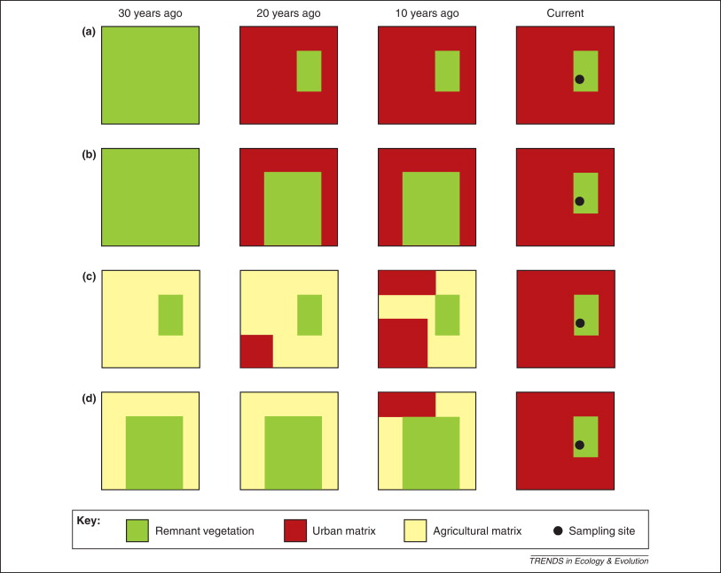 So now we’re in 2011 and we (sort of) finally understand that humans are important players in urban ecosystems and shape a lot of ecological processes. But what about the temporality of the land? Ramalho & Hobbs (2012) address this by reviewing urbanization in ecology and emphasizing that current frameworks have misleading assumptions about the system. Here, they introduce that processes should explicitly highlight temporal perspectives and consider land-use legacies in relation to environmental change. This is particularly important as the world continues moving toward an urbanizing planet where landscapes are being urbanized on different time scales, both globally and locally. Thus, the impact of urbanization in one area of a city shouldn’t be equated to another area as it’s not uniform (Figure 2). When combined with other frameworks (such as Collins et al. 2011), this framework could produce incredible science.