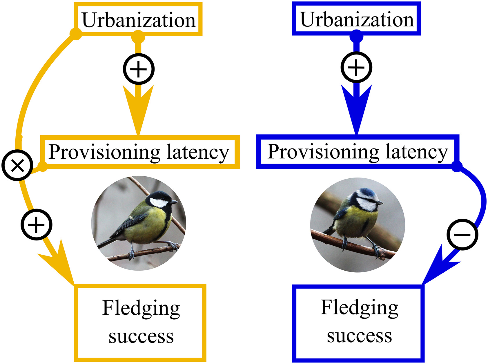 Coping with novelty across an urban mosaic: Provisioning latency increases closer to roads and is associated with species-specific reproductive success in two urban adapters
