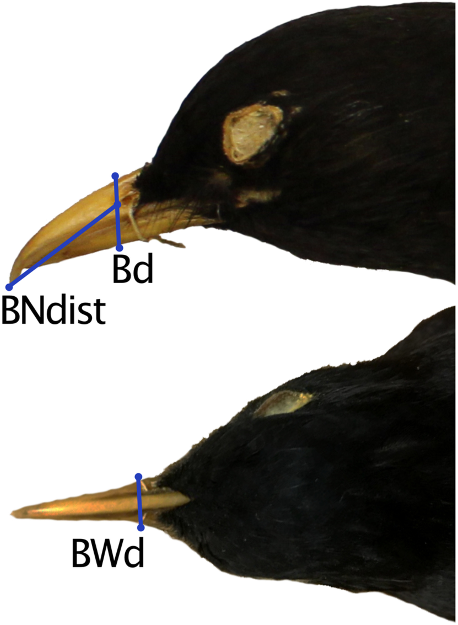 Humans’ large influence on the environment has constructed many new ecological niches, such as in urban areas. Phenotypic changes, including morphological ones related to human influence, are known from a small number of bird species. The amount of change in a given time period, that is, the rate of change, may vary. Rates of change (both evolutionary and through phenotypic plasticity) are reportedly rapid in human-influenced settings, although this is disputed. We present new data on changes in beak dimensions and rates of change over historical time periods in four urban bird species (Common Chaffinch, European Greenfinch, Eurasian Blackbird, House Sparrow) from three Swiss cities (Basel, Bern, Geneva). Our study shows that beak dimensions have changed little in most investigated urban bird populations over the past century. Only in Genevan Blackbirds there was evidence for an increase in beak length over the past 65 years; Bernese Chaffinches appear to be trending toward a decrease in beak width over the past 55 years. Rates of change in our sample in comparison with literature records showed that compared to populations less influenced by humans, urban evolutionary rates appear to be similar. Although in accordance with previous findings about other urban bird species, our study exemplifies the difficulty to find universal patterns in tempo and mode of phenotypic evolution in urban areas, even when considering the same taxa. Our data contribute to the expanding field of urban evolutionary biology, which is particularly important regarding the growing urban habitats worldwide.