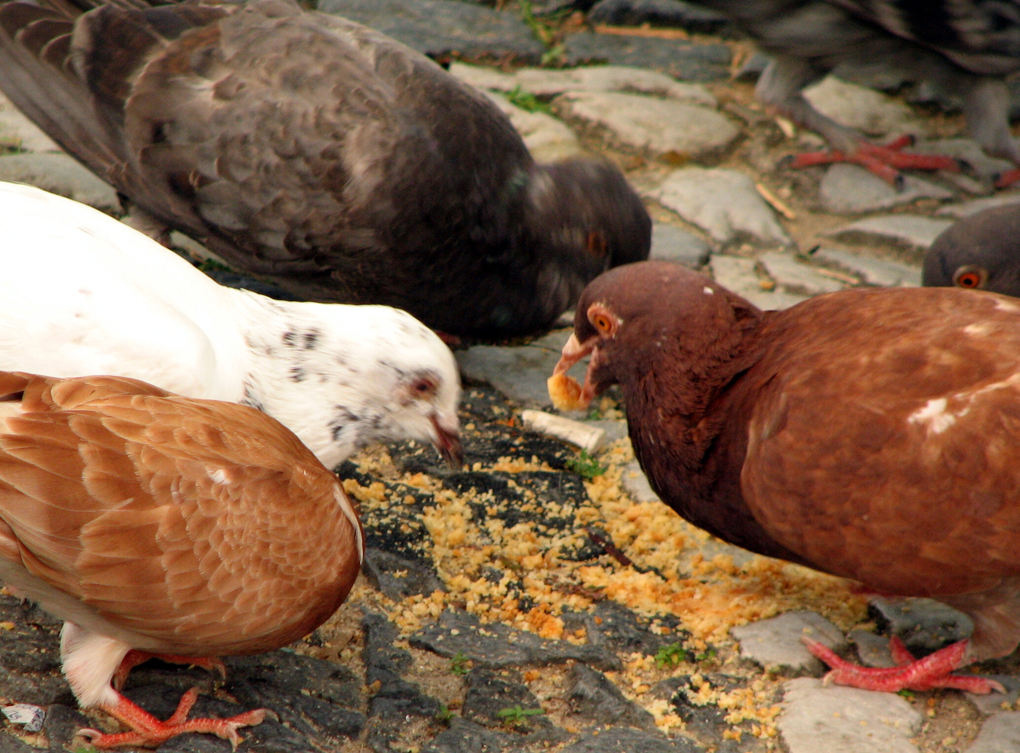The environmental pressures of the city have resulted in some interesting differences between urban and rural pigeons, such as the darker plumage of pigeons in the city compared to pigeons in more rural suburban areas3. A possible reason for this phenomenon is that plumage color affects parasite prevalence, as researchers found that darker pigeons had less parasites than their lighter counterparts in an urban environment4.  The exact mechanism behind this is still unclear, but the prominent viewpoint in scientific debate is that the variability of pigeon colors is reflective of urban adaptation1.